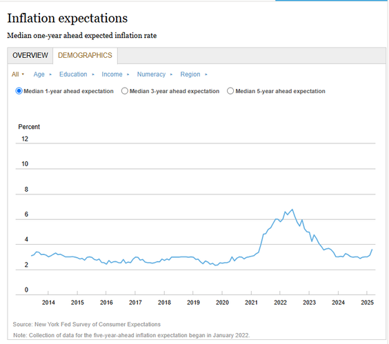Średnie oczekiwania dotyczące bezrobocia – lub średnie prawdopodobieństwo, że stopa bezrobocia w USA będzie wyższa za rok – wzrosły o 4,6 p proc. do 44,0 proc. w marcu, co jest najwyższym wynikiem od kwietnia 2020 r. Średnie postrzegane prawdopodobieństwo utraty pracy w ciągu najbliższych dwunastu miesięcy wzrosło o 1,6 p proc. do 15,7 proc., co jest najwyższym poziomem od marca 2024 r. Wzrost był największy w przypadku respondentów z rocznymi dochodami gospodarstwa domowego poniżej 50 000 USD..