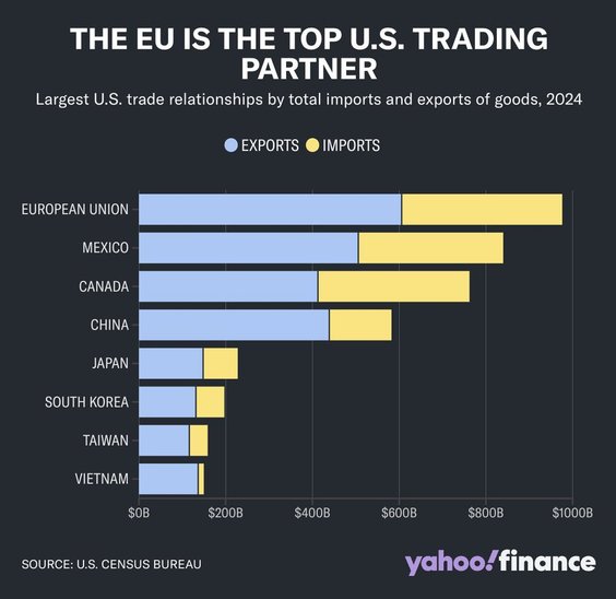 Prezydent Trump i przewodnicząca Komisji Europejskiej Ursula von der Leyen ogłosili w niedzielę, że USA i UE uzgodniły ramy umowy handlowej, która obejmuje podstawową stawkę celną w wysokości 15 proc. na towary importowane z UE do USA.