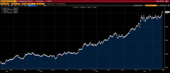 Zyskały ponad jedną trzecią i osiągnęły rekordowy poziom na początku tego tygodnia. Wzrost ten był napędzany akumulacją banków centralnych i zakładami, że Fed wkrótce zacznie obniżać stopy procentowe w USA. Dodatkowe wsparcie pojawiło się niedawno, gdy prezydent Donald Trump podjął działania mające na celu zwiększenie kontroli nad Fed, w tym naciski na odsunięcie gubernator Lisy Cook.