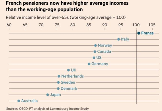 Podczas gdy przedstawiciele pokolenia wyżu demograficznego w USA i Wielkiej Brytanii są zmuszani do powrotu do pracy, ponieważ nie stać ich na przejście na emeryturę w obecnej sytuacji, emeryci we Francji nie tylko odpoczywają, ale nawet zarabiają więcej niż ci, którzy mają pracę.