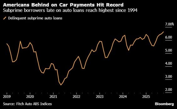 Wysokie koszty pożyczek, rosnące koszty utrzymania i kurczące się oszczędności nadwerężają budżety gospodarstw domowych, sprawiając, że pożyczkobiorcy o niskim ryzyku stają się coraz bardziej podatni na zagrożenia. Rosnąca liczba zaległości w spłacie kredytów samochodowych typu subprime jest wyraźnym sygnałem narastającej presji na rynku kredytowym, ponieważ wielu Amerykanów o niskich dochodach ma problemy z regulowaniem płatności.