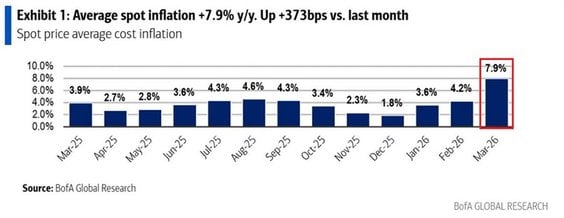Wzrost w marcu był napędzany głównie przez wyższe ceny paliw. Ale pełny wpływ rosnących kosztów nawozów i tworzyw sztucznych nie jest jeszcze widoczny na półkach sklepowych.