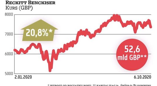 Od początku roku notowania brytyjskiego producenta artykułów higienicznych oraz leków, w którego portfelu znajdują się marki takie jak Calgon, Durex czy Strepsils, wzrosły o ponad 20 proc. Mocna pozycja przedsiębiorstwa wynika m.in. ze stabilnej pozycji na rynku, znaczącej poprawy wyników finansowych oraz wypłacanej nieprzerwanie od 2006 r. dywidendy.