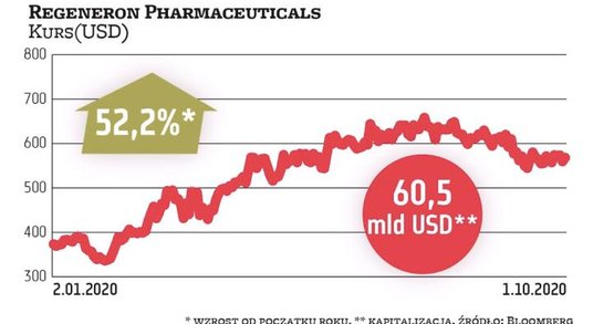 Zainteresowanie inwestorów w ostatnich dniach przyciągnęły prace nad REGEN-COV2, czyli mieszanką lekarstw, dzięki której niehospitalizowani pacjenci leczyli się szybciej. Produkt zmniejszał również symptomy występujące podczas zakażenia Covid-19. Obecnie lek przechodzi zaawansowane badania skuteczności przy dodaniu go do standardowego leczenia choroby. Zarząd nie podał premiery produktu, jednak patrząc na umowę, jaką spółka zawarła m.in. z Departamentem Obrony USA o wartości 450 mln dolarów, oraz poziom zaawansowania badań lek może być gotowy na początku 2021 r.